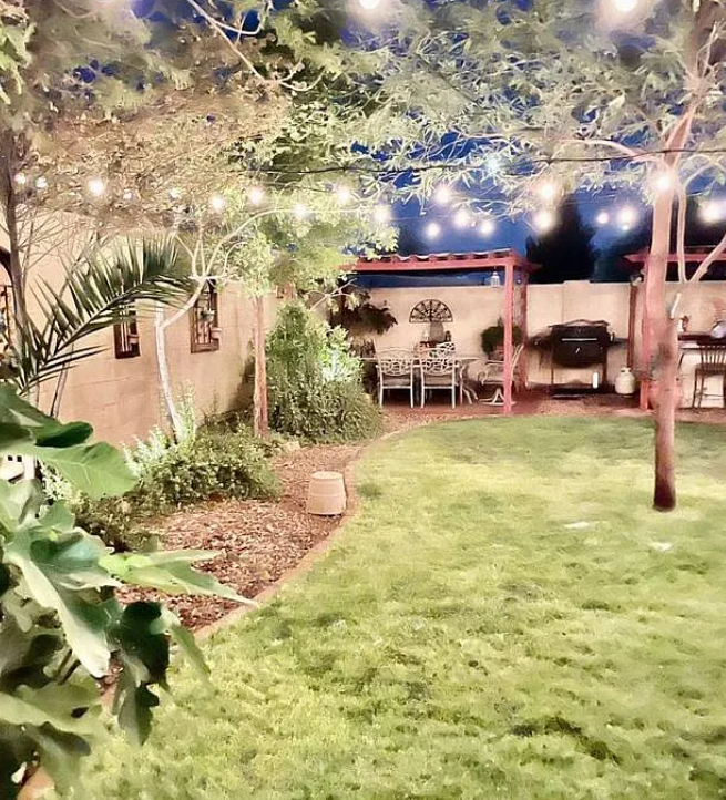 This home welcomes you with beautiful curb appeal and a well-designed floor plan. Inside, you’ll find tile flooring throughout, accented by large white baseboards for a clean, modern look. The kitchen features granite countertops, a mini mosaic tile backsplash, staggered maple chocolate cabinets with crown molding, a tall breakfast bar, gas stove, and a spacious walk-in pantry. Bedrooms offer large walk-in closets, while the family room includes a cozy fireplace. The backyard is lush and invitin