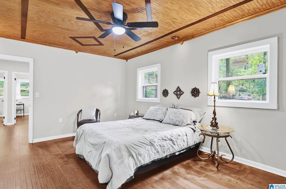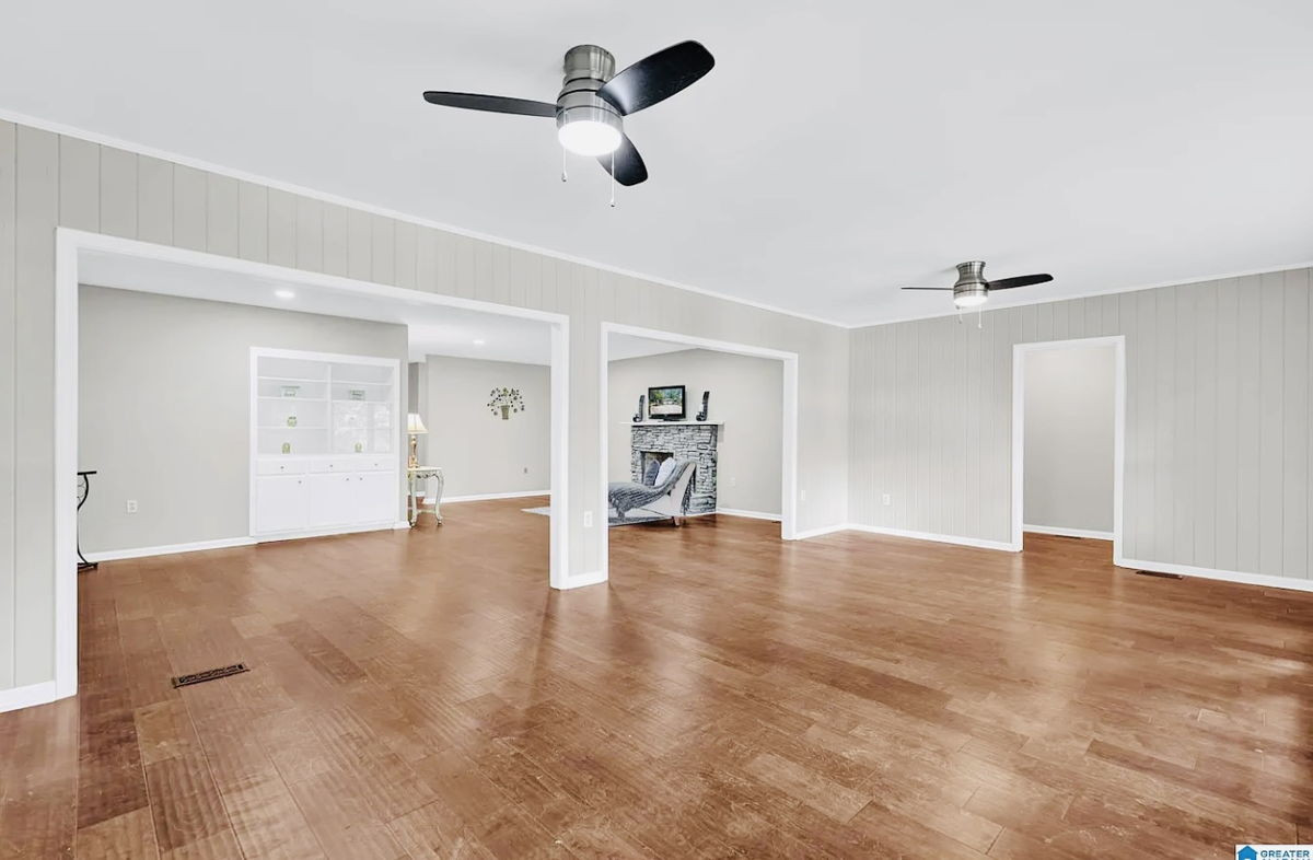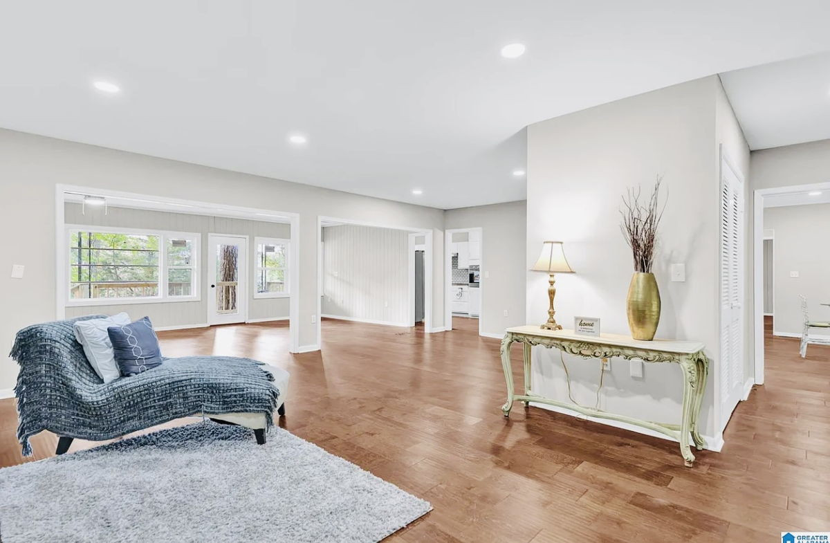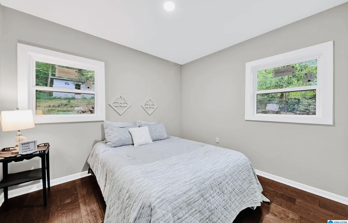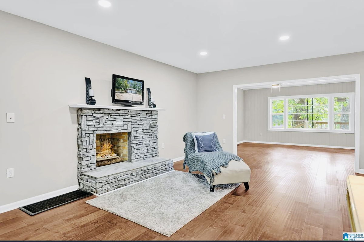 Discover this exceptional 6-bedroom, 4-bathroom home nestled on a rare 0.68-acre lakefront lot in the desirable Mountain Lake Estates community of Birmingham. Boasting over 5,135 square feet of living space, including a finished daylight basement, this property offers a versatile layout perfect for a large family. Recent upgrades include a new roof, HVAC system, windows, a renovated kitchen with butcher block counters and stainless steel appliances, updated bathrooms, hardwood flooring, recessed lighting, and smooth ceilings. The finished basement features a bedroom, full bath, wet bar, and private living area. A main-level bonus suite with a kitchenette is ideal for an in-law suite or guest accommodations. Enjoy cozy evenings by one of the two wood-burning fireplaces, or relax on the covered patio and deck overlooking the fenced yard and private dock with approximately 35 feet of waterfront. An attached 2-car garage provides convenient parking and storage. This home offers a unique opportunity to enjoy lakefront living with modern updates and ample space for comfortable living.