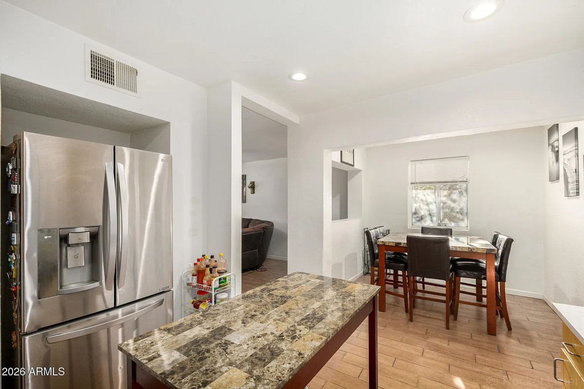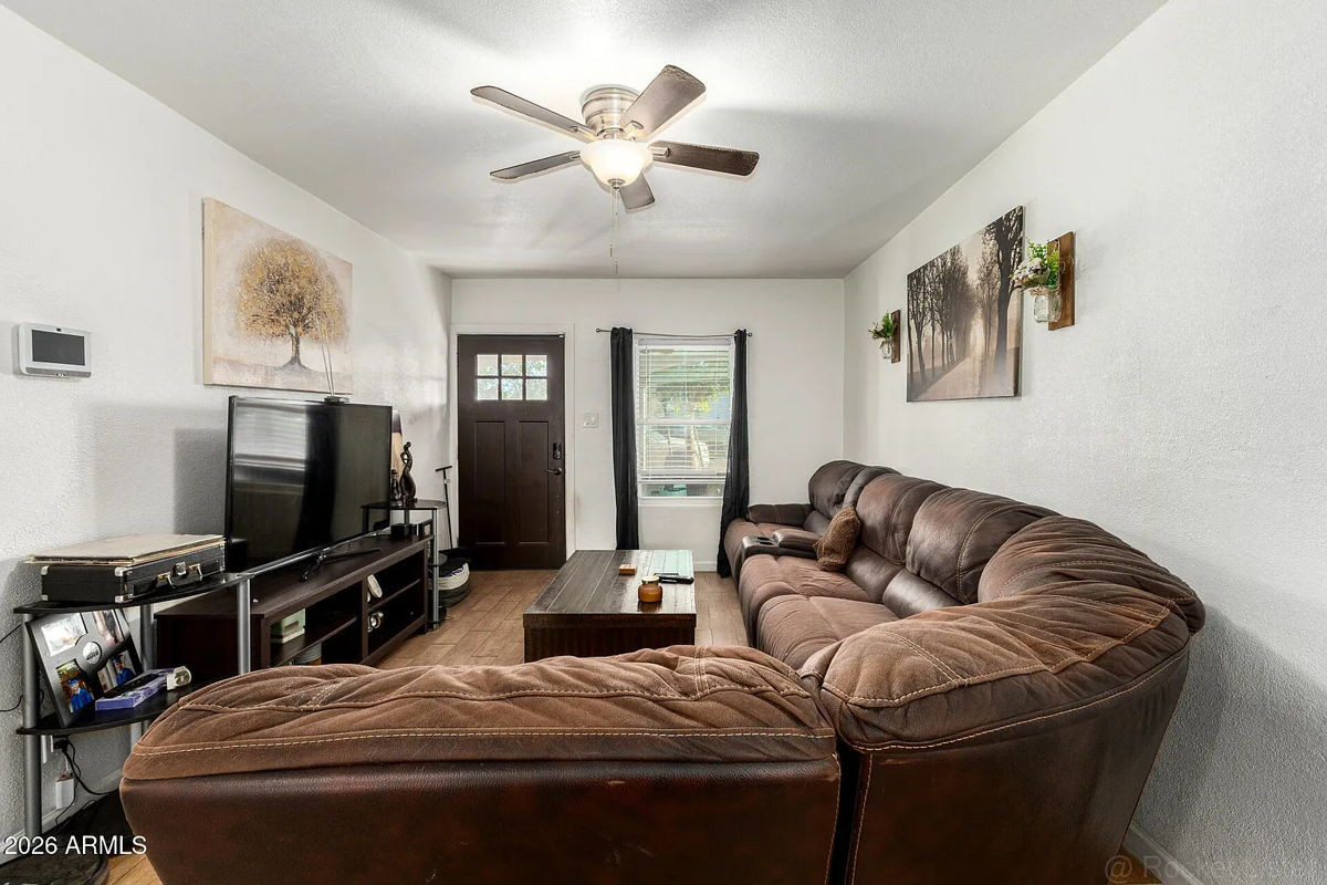 Welcome to this charming single-family home in North Phoenix! Built in 1947, this beautifully updated residence features 3 bedrooms and 2 bathrooms within 1,389 square feet of living space, situated on a 6,991 square foot lot. Enjoy modern comforts with recently updated plank flooring, quartz countertops, LED lighting, and contemporary finishes throughout. The property boasts a recently replaced roof and convenient access to the highway. The large backyard includes an RV gate, perfect for outdoor enthusiasts. The low-maintenance front yard features attractive rock landscaping and artificial turf. This home offers a blend of classic charm and modern convenience in a desirable Phoenix location.